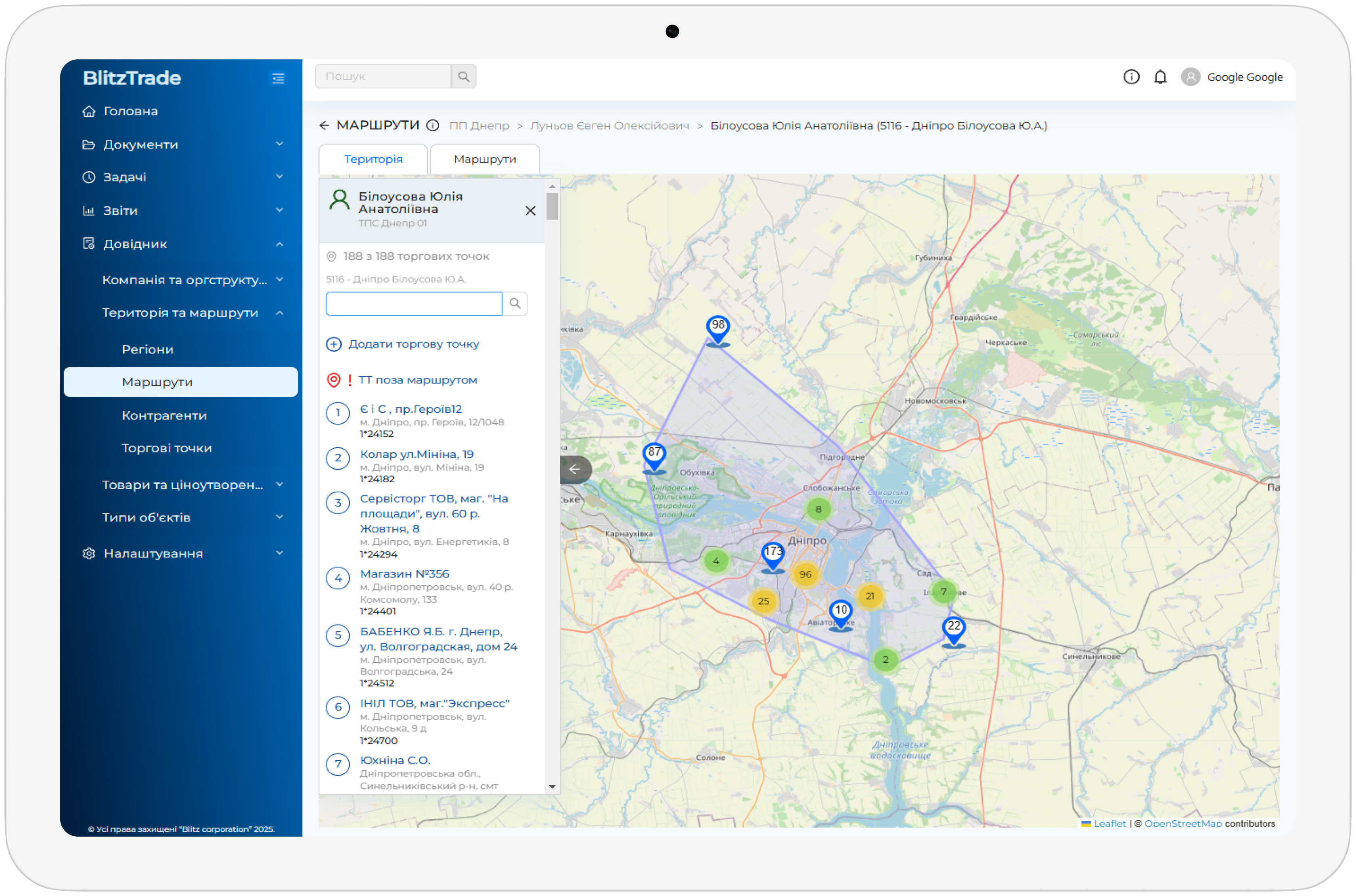 Планування розкладу візитів, управління територіями, оптимізація маршрутів